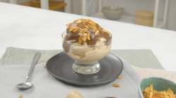 - Gib die Eiswürfel, sobald sie gefroren sind, in einen Mixer oder in eine Küchenmaschine und mixe das Ganze so lange, bis eine cremige Masse entsteht. Serviere das Eis mit karamellisierten Mandelstückchen und einer selbstgemachten Schokosoße.