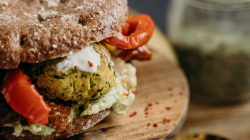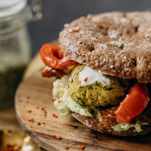 Der Falafel-Bagel ist vor allem eines: eine proteinreiche, vegetarische Alternative zu einem herkömmlichen Burger, die den Körper sowohl mit Kohlenhydraten und Fetten als auch mit zahlreichen Proteinen versorgt.