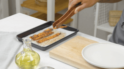- Drehe den Karotten-Bacon nach der Hälfte der Zeit um.