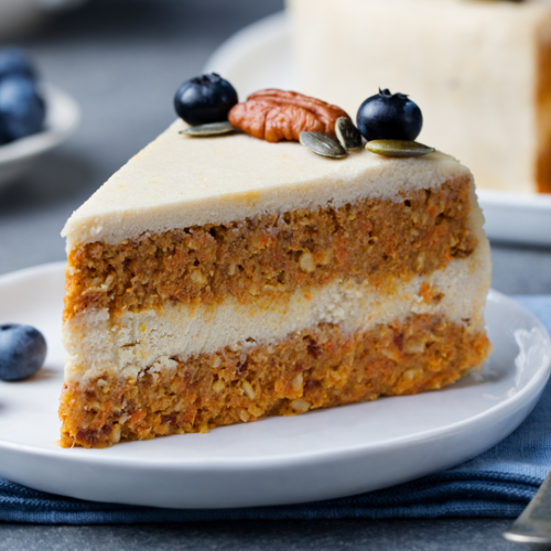 Saftiger Karottenkuchen mit veganer Frischkäsecreme