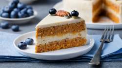 - Garniere den Karottenkuchen mit Heidelbeeren und Pekannüssen oder anderen dekorativen Lebensmitteln deiner Wahl.