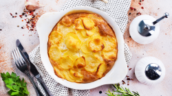 - Teste mit einer Gabel, ob die Kartoffelscheiben schön weich sind. Hole das Kartoffelgratin anschließend aus dem Ofen und lasse es kurz abkühlen, bevor du es servierst.