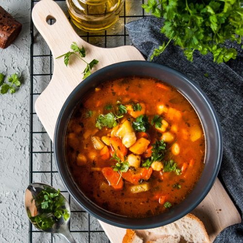Lecker und würzig im Geschmack und mit einer Extraportion Gemüse: Dieser orientalische Kichererbsen-Eintopf ist die ideale Mahlzeit, um das Gemüt zu wärmen und den Körper gleichzeitig mit wertvollen Mineralstoffen und Vitaminen zu versorgen.