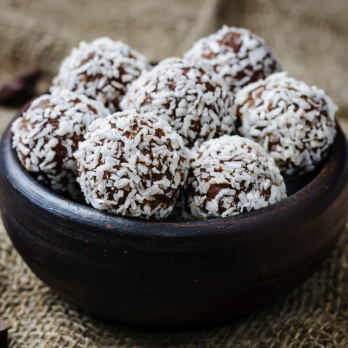 - Stelle die Kokosbällchen ein weiteres Mal in den Kühlschrank. Sobald die Schokolade hart geworden ist, sind die Bällchen servierfertig.