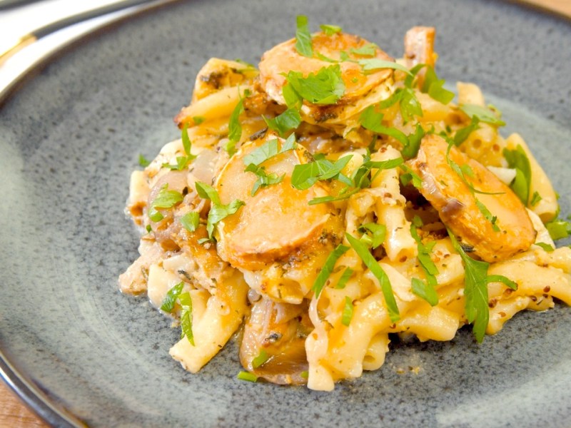Nudelauflauf mit grünem Pesto | vegan & laktosefrei