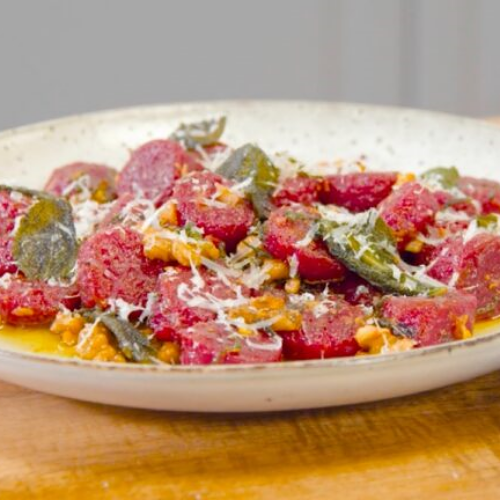 Rote-Bete-Gnocchi mit Walnuss in Salbeibutter