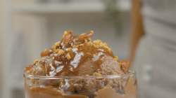 Diese Schoko-Haselnuss-Eiscreme zeigt, dass veganes Eis alles andere als langweilig ist. Vor allem die karamellisierte Apfelsoße verleiht dem Ganzen das gewisse Etwas.