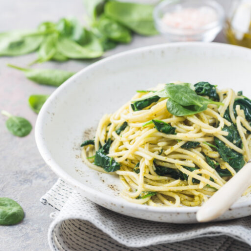 Diese wunderbar cremige Spinat-Pasta überzeugt nicht nur mit Geschmack, sondern zudem mit ausgezeichneten Nährwerten. Denn Spinat versorgt den Körper mit essenziellen B-Vitaminen sowie zahlreichen Mineralstoffen wie Magnesium, Kalium, Kalzium und Eisen.