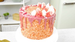 - Für die Ganache bringst du die weiße Schokolade mit der veganen Sahne in der Mikrowelle zum Schmelzen. (30 Sekunden reichen. Wichtig ist, dass die Mischung nicht zu heiß wird.) Färbe die Ganache mit einem halben Tropfen roter Lebensmittelfarbe rosa ein und verteile sie danach tropfenförmig über dem Kuchen. Färbe die restliche Buttercreme außerdem, je nach Geschmack, rosa und hellrosa ein, fülle sie in einen Spritzbeutel und dekoriere mit ihr den Kuchen. Verschiedenfarbige Zuckerperlen runden das Gesamtbild ab. Stelle den Kuchen nochmals für 2 Stunden in den Kühlschrank, bevor du ihn servierst.